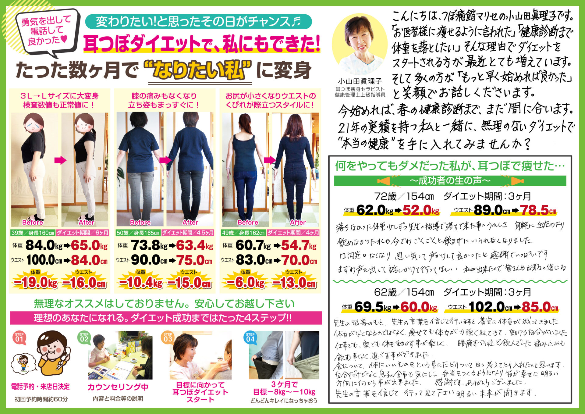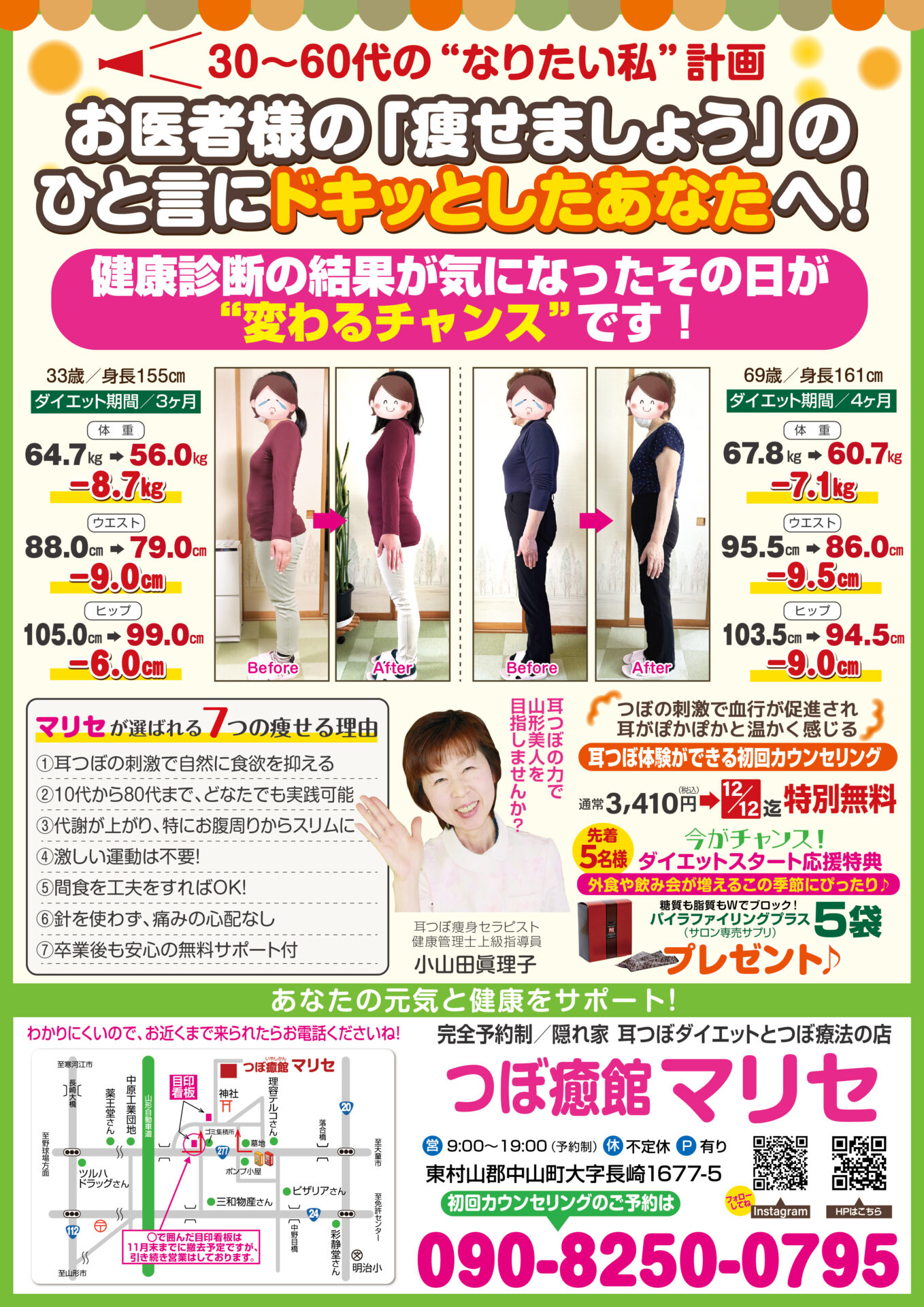 たった数ヶ月で、“なりたい私に”変身できる 健康耳つぼダイエットのカウンセリングを受けてみてください。
